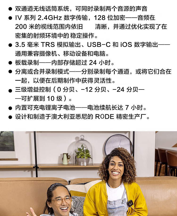 RODE 罗德一拖二wireless go II无线领夹降噪麦克风