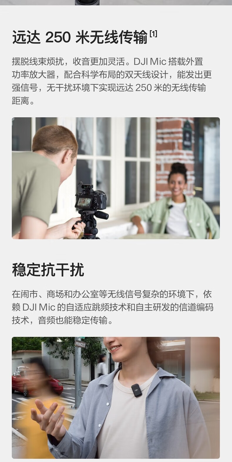 大疆 DJI Mic 无线麦克风 一拖二无线领夹麦克风